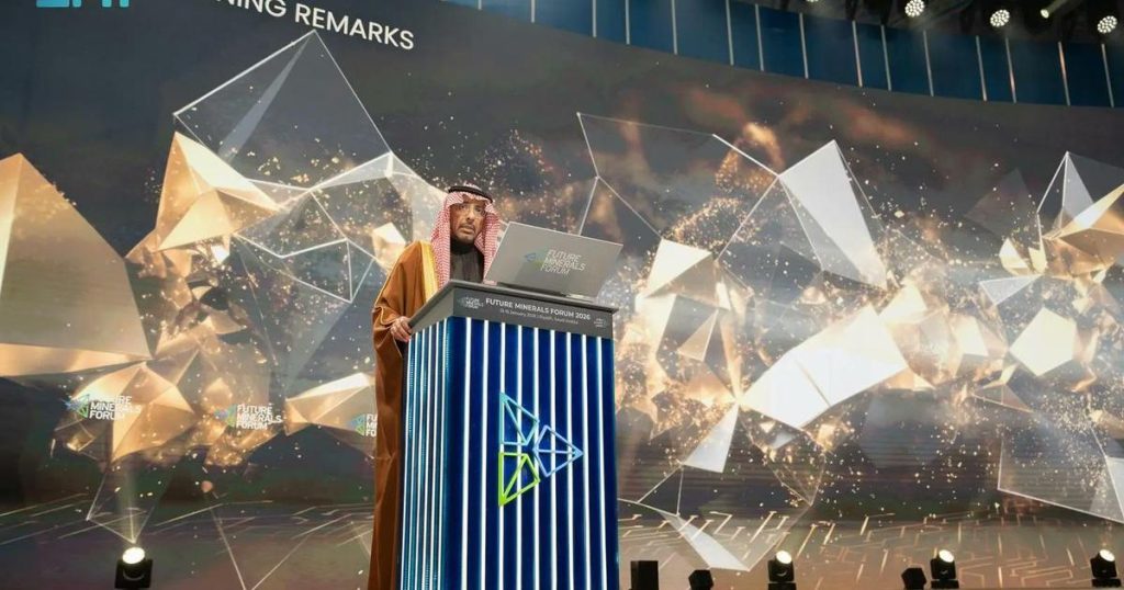 تلتزم المملكة بتسريع الاستثمار في مواردها المعدنية المقدرة بنحو 9.4 تريليونات ريال (حوالي 2.5 تريليون دولار). وستطرح المملكة فرصاً استكشافية تنافسية خلال عامي 2026 و2027، بهدف جذب المزيد من الاستثمارات الأجنبية وتطوير مشاريع تعدينية جديدة. ويشمل ذلك التركيز على معادن المستقبل مثل الليثيوم والكوبالت، والتي تعتبر ضرورية لتقنيات الطاقة النظيفة.