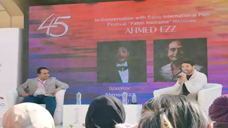 أحمد عز منحه مهرجان القاهرة السينمائي الدولي جائزة فاتن حمامة للإنجاز الإبداعي في حفل افتتاح الدورة ٤٥ الذي أقيم أمس الأربعاء ١٣ نوفمبر، وسط حضور كوكبة من نجوم الفن، بينهم: محمود حميدة، سوسن بدر، لبلبة، إلهام شاهين، داليا البحيري، شريف منير، أشرف عبدالباقي.