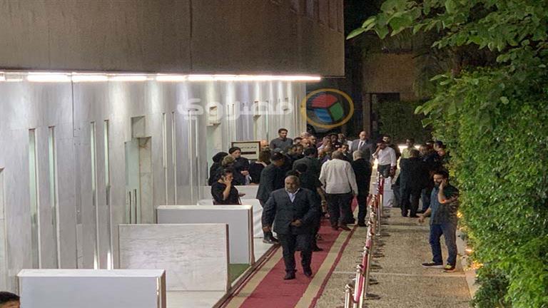 أشرف زكي ومنير مكرم في عزاء زوجة أحمد عدوية