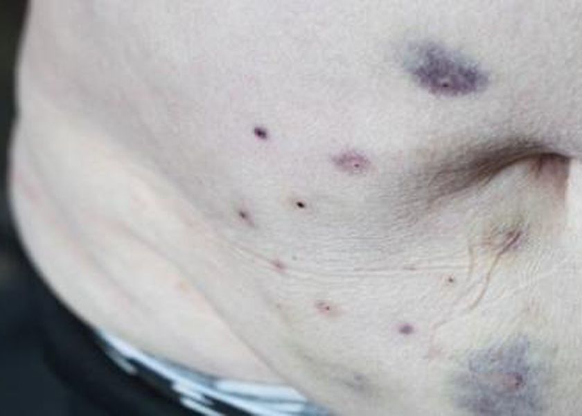 «روسيا اليوم» نقلت عن الدكتور ألكسندر مياسنيكوف، تحذيرًا من ظهور ما لا يقل عن 5 كدمات في نفس الوقت على الجسم، ويبلغ قطر كل منها سنتيمترا واحدا دون الذراعين والساقين، مؤكدًا أن 90% من هذه الحالات وجد الأطباء أنهم يعانون من مشكلات صحية، مثل تخثر الدم، وأمراض الروماتيزم، وأمراض الكبد والدم، وكذلك تأثير الأدوية والأطعمة.