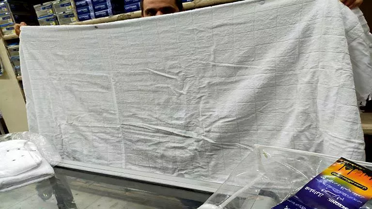 إزار: وهو ثوب من قماش يلفه على وسطه يستر به جسده ما بين سرته إلى ما دون ركبته، وخيره الجديد الأبيض الذي لا يشف عن العورة “بشكير”.