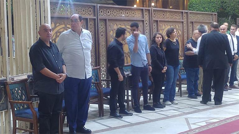 ظهر المخرج مجدي أحمد علي وهو يستقبل الوافدين على العزاء وسط حالة من الحزن متأثرًا بفراق شقيقه.