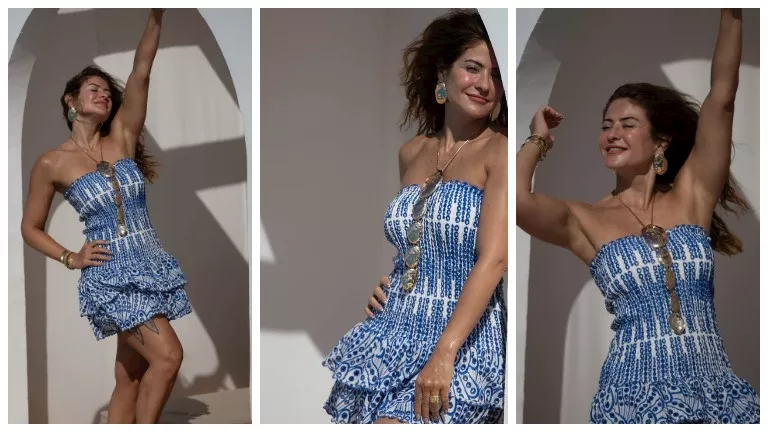 بالصور.. جلسة تصوير جريئة لـ هيدي كرم بفستان صيفي قصير
