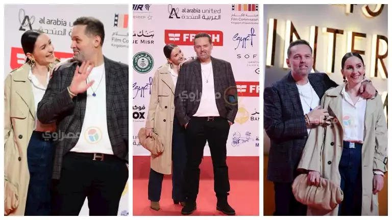 وتواجد محمد بصحبة زوجته على السجادة الحمراء، وظهرا بلقطات عفوية ورومانسية، قبل الانتقال إلى المسرح الكبير لمشاهدة الفيلم.