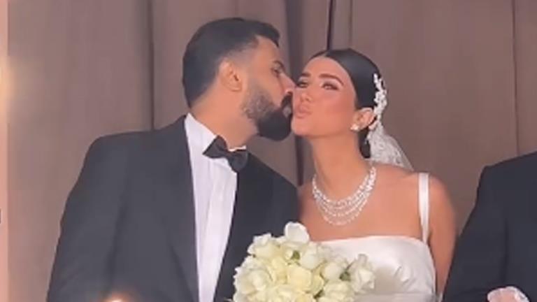 وداعب المخرج محمد سامي شقيقته وسط ضحكات “ريم” ليقوم “سامي” بتقبيلها، كما قام والدها بتقبيلها وسط سعادة غامرة من “ريم”.