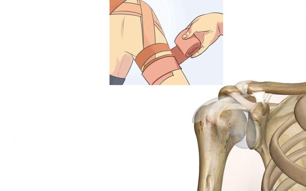 تثبيت الذراع بحمالة طبية Arm Sling لمدة تتراوح بين 3 إلى 4 أسابيع.