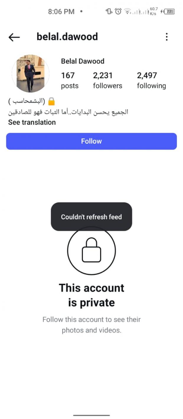 وسرعان ما قام «بلال» بطل حلقة مدفع رمضان، بإغلاق حساباته الشخصية أمام المتابعين ليجعلها متاحة للأصدقاء فقط.