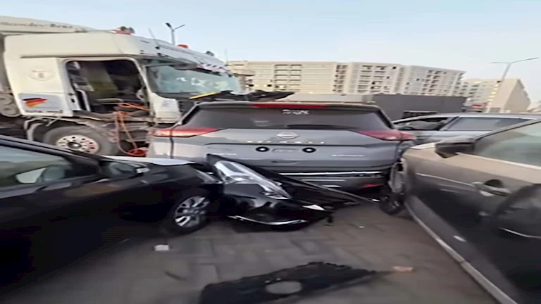 واقتحمت شاحنة، الأربعاء، محيط معرض سيارات الليثي وحطمت نحو 11 سيارة ركوب ملاكي جديدة من طرازات (نيسان – إم جي – بايك – هيونداي – شيري – كيا -سيات ).