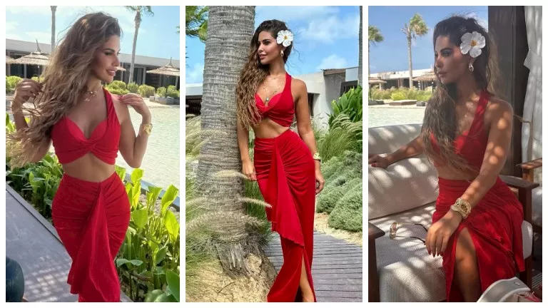ونشرت مي سليم صور جديدة ظهرت خلالها بفستان أحمر جريء وجذاب على البحر خطفت به الأنظار وحاز على إعجاب جمهورها ومتابعيها.