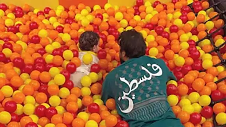 وظهر حاتم في الصورة مع نجله، مرتديًا تيشيرت مكتوب عليه كلمة “فلسطين”.