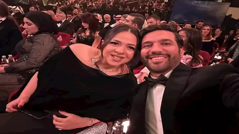 النجم حسن الرداد، خلال حضوره مع زوجته النجة إيمي سمير غانم، حفل توزيع جوائز “Joy Awards 2025″، لم يحسم بشكل مباشر، ما يتردد عن حملها.