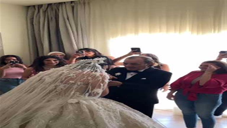وحرصت العروس على تسجيل الـ”First Look” مع والدها الفنان علاء مرسي، وظهرت مرتدية فستانًا باللون الأبيض، لتقوم باحتضان والدها وتقبل يديه.