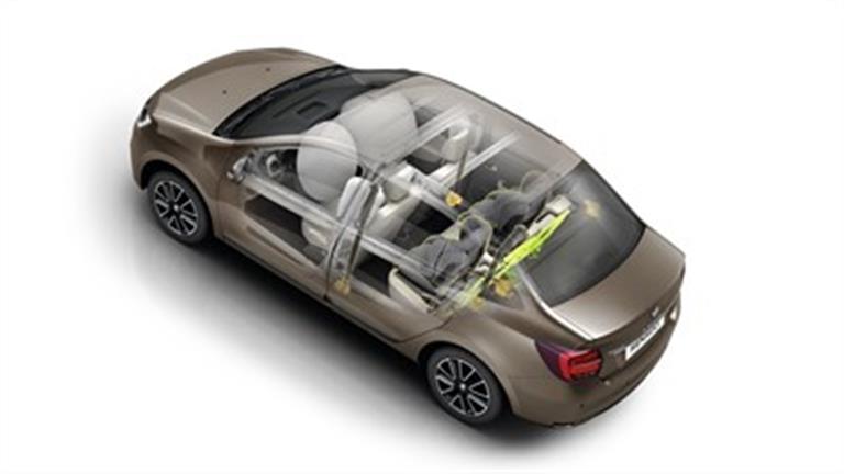 تقدم لوجان بوسائد هوائية للسائق والراكب الأمامي، نظام فرامل مانعة للانغلاق ABS ، توزيع اليكتروني للفرامل EBD ، حساسات ركن خلفية معززة بكاميرا.