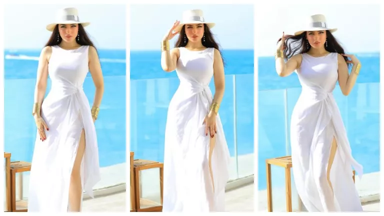 نشرت ياسمين عز صور جديدة لها عبر حسابها على انستجرام، ظهرت خلالها بفستان أبيض أنيق بفتحة ساق أمام البحر.