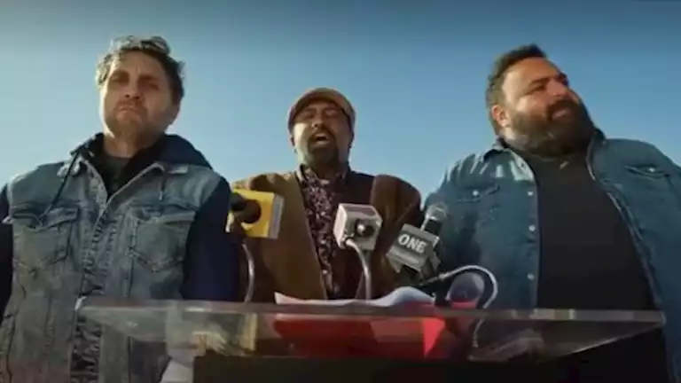 وظهر بالإعلان عدد من أبطال المسرحية، وهم: هشام ماجد، شيكو، محمد أوتاكا، أوس أوس، أمام سفح الأهرامات يعلنون الذهاب في بعثة إلى الفضاء بعد دمار كوكب الأرض بسبب نيزك، وسط العديد من المواقف الكوميدية، ويشارك ببطولة المسرحية كل من أحمد فتحي، مي كساب، تأليف كريم سامي وأحمد عبدالوهاب، إخراج محمد أوتاكا.