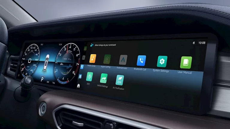 وعلى صعيد الراحة والرفاهية، تضم جيتور X90 Plus نظام تكييف أوتوماتيكي مزدوج المناطق مزوّد بشاشة تحكم تعمل باللمس قياس 9.7 بوصة، إضافة إلى نظام PM 2.5 لتنقية الهواء داخل المقصورة، مما يوفر بيئة صحية ونقية للركاب. وفيما يتعلق بوسائل الأمان، تأتي السيارة مجهزة بوسائد هوائية أمامية لكل من السائق والراكب الأمامي، بالإضافة إلى وسائد جانبية، ما يعزز من مستوى الحماية داخل المقصورة.