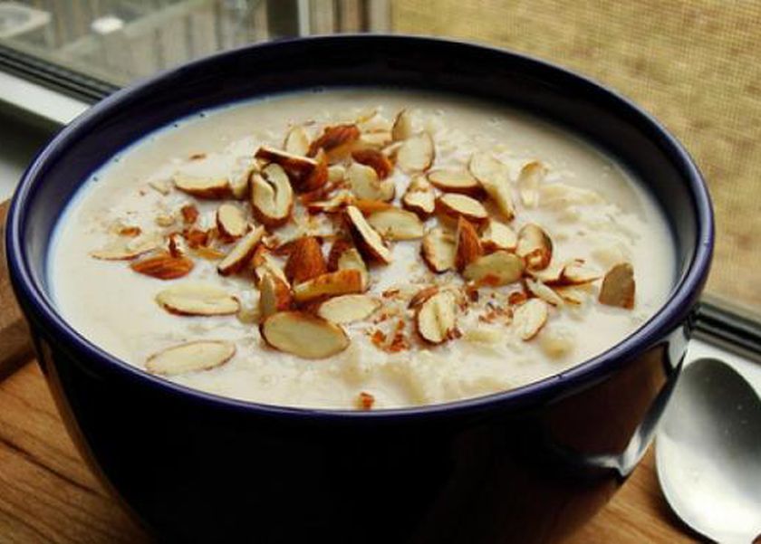 • يتم وضع الأرز باللبن في الثلاجة لمدة ساعة أو ساعتين قبل التقديم.