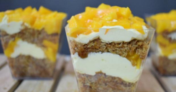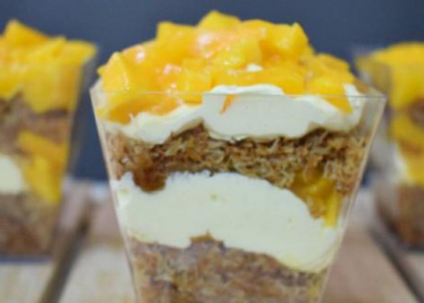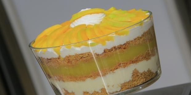 حضري Dream Whip حسب التعليمات الموجودة على العبوة باستخدام عصير المانجو.