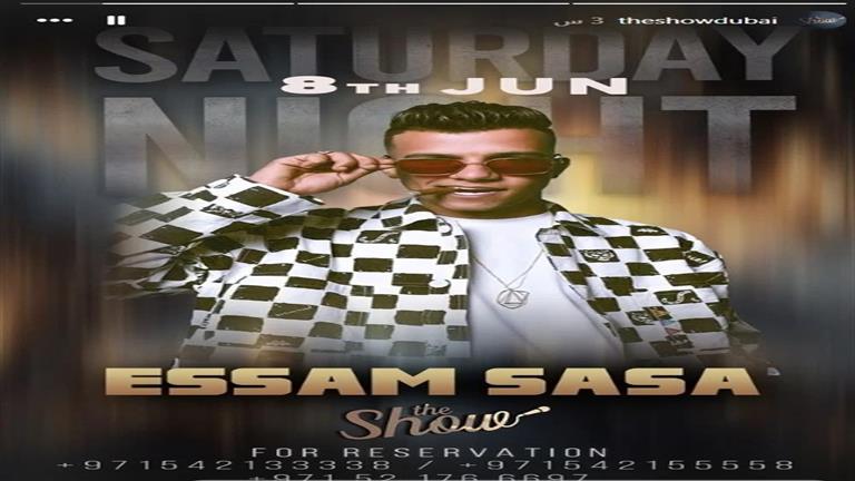 أعلنت صفحة مسرح the show dubai عن إقامة حفل غنائي لمطرب المهرجانات عصام صاصا في دولة الإمارات العربية المتحدة.