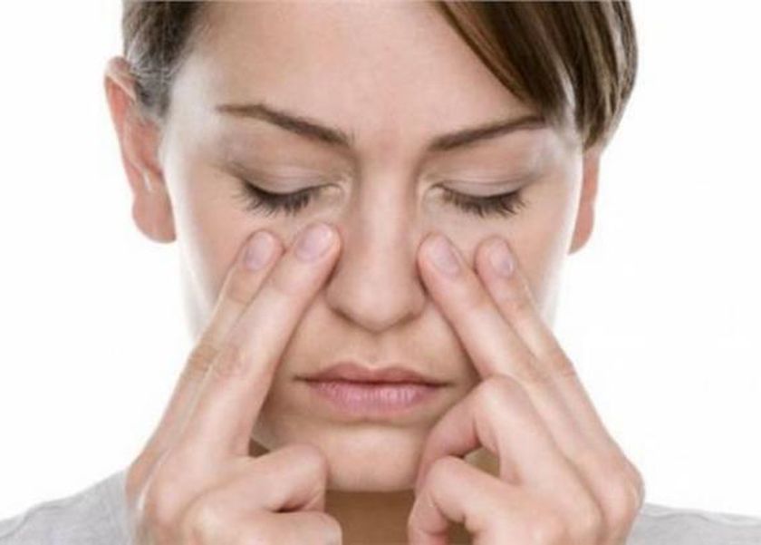 ألم وضغط في الجبهة، حول العينين والأنف، يزداد سوءًا عند الانحناء أو الاستلقاء.