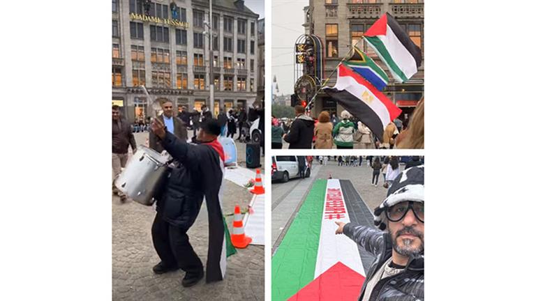 “علم مصر وفلسطين”.. أحمد حلمي يشارك في مسيرة داعمة للقضية الفلسطينية في روتردام