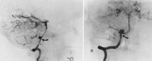 وتمدد الأوعية الدموية في المخ يسبب صداعا شديدا مُفاجئا، وقد يصل إلى تمزق تمدد الأوعية الدموية في الدماغ أوتحتاج العلاج بالجراحة، أو إجراء القسطرة التداخلية بالمخ، أو المراقبة لتمدد الأوعية الدموية الصغيرة غير المتمزقة.