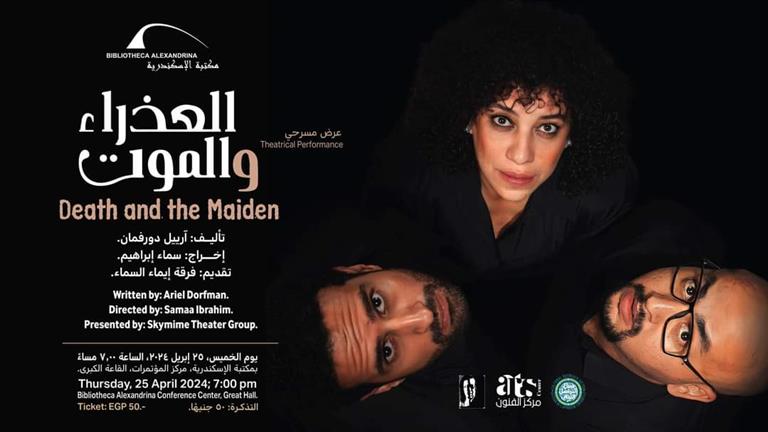 الفنانة سما إبراهيم، تقدم من إخراجها وبطولتها، مسرحية “العذراء والموت”، يوم الخميس المقبل، الموافق 25 أبريل على المسرح الكبير بمكتبة الإسكندرية.