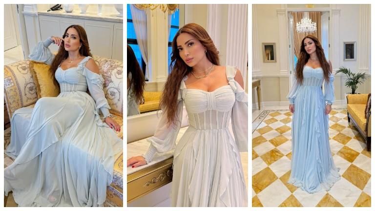 ظهرت نسرين طافش في جلسة التصوير بإطلالة ملكية إذ ارتدت فستانا أنيقا وحرصت على التقاط عدد من الصور التذكارية، وحازت الجلسة على إعجاب جمهورها ومتابعيها.