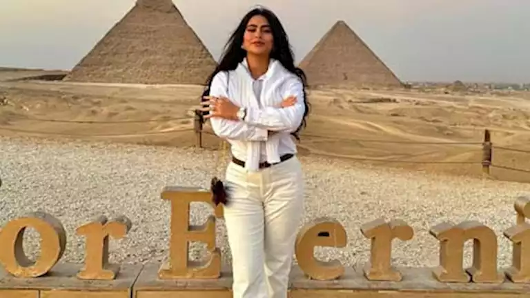شاركت الفنانة هاجر أحمد، متابعيها عبر السوشيال ميديا، صورا لها أمام الأهرامات من أحدث ظهور.