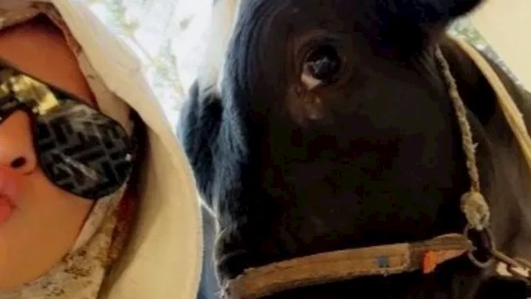 ونشر وائل صورة “سيلفي” لـ ياسمين بجوار “الأضحية”، وعلق: “أنا مشوفتش واحدة بتعرف تقنع اي حيوان يقف ياخد سيلفي ويبص للكاميرا قدك يا قادرة، اقنعتيه ازاي قبل الدبح”.