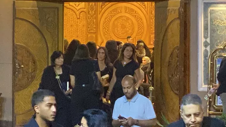 توافد نجوم الفن على عزاء الفنان الشاب الراحل عمرو ستين، والمقام حاليًا في مسجد الشرطة بمنطقة الشيخ زايد.