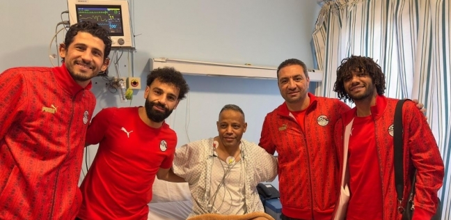 جالسًا على أحد الأَسِرَّة داخل مستشفى، يحيط به مجموعة من لاعبي منتخب مصر، محمد صلاح والنني وحجازي، أصروا على التواجد معه لمآزراته في أزمته الصحية الأخيرة، والذي دخل على إثرها المستشفى.