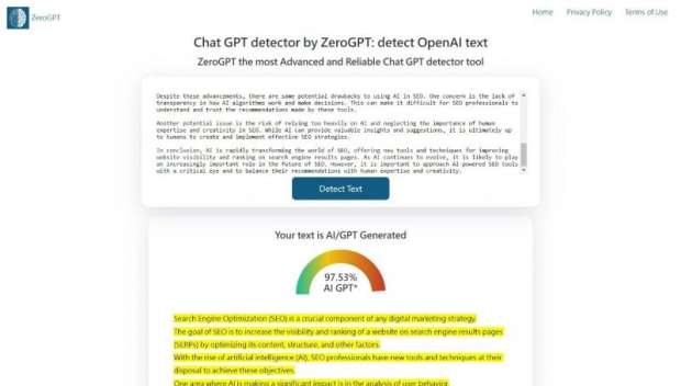 الذكاء الاصطناعي يمكنه كشف النصوص المولدة في بعض الأحيان مثلما يمكنه توليدها، توجد بعض الأدوات التي يمكنها مساعدتك في اكتشاف هذه النصوص والتي من بينها «ZEROGPT»، و«Writer»، توفر هذه الأدوات تحليلًا كاملًا للنص المقدم مع ذكر نسبة الدمج بين النص المولد من الذكاء الاصطناعي والتعديل الشخصي.