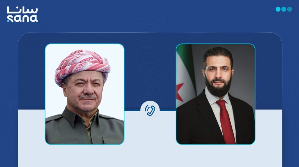 أجرى الرئيس السوري أحمد الشرع اتصالاً هاتفياً مع مسعود بارزاني، رئيس الحزب الديمقراطي الكردستاني، مساء الأحد. يأتي هذا الاتصال في ظل تطورات إقليمية متسارعة وتوترات مستمرة في المنطقة، ويهدف إلى بحث سبل تعزيز التنسيق والتشاور بين الجانبين حول القضايا ذات الاهتمام المشترك، بما في ذلك الوضع في شمال العراق والتعاون في مكافحة الإرهاب. هذا التطور يمثل نقطة مهمة في العلاقات السورية الكردية، خاصة فيما يتعلق بمساعي تحقيق الاستقرار الإقليمي.