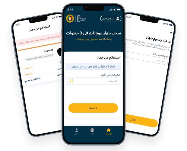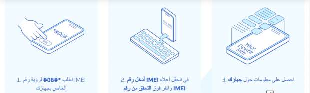 – الاستعلام عن طريق الرقم التعريفي للجهاز الجديد وهو المكون من عدد 15 رقما عبر التطبيق.