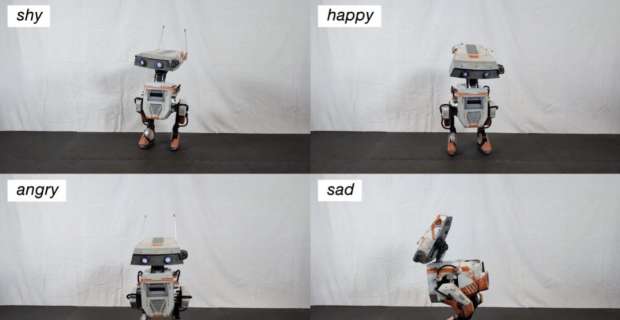 الروبوت الذي يشبه ديزنى، يجري تدريب نموذجنا على مجموعة بيانات للتفاعلات بين الإنسان والروبوت، إذ يُطلب من مشغل خبير تغيير تفاعلات الروبوت ومزاجه، بينما يجري تسجيل أوامر المشغل بالإضافة إلى وضعية الإنسان والروبوت، ليتعلم الأخير كيفية التنبؤ بأوامر المشغل المستمرة من خلال عملية الانتشار والأوامر المنفصلة من خلال المصنف بعد توثيق جميع التفاعلات جرى تسليمها إلى نظام ذكاء اصطناعى ليتعلّم الروبوت محاكاة قدرة المشغِّل الغريزية واستجابته وتصرفه بطرق تبدو واقعية للغاية.