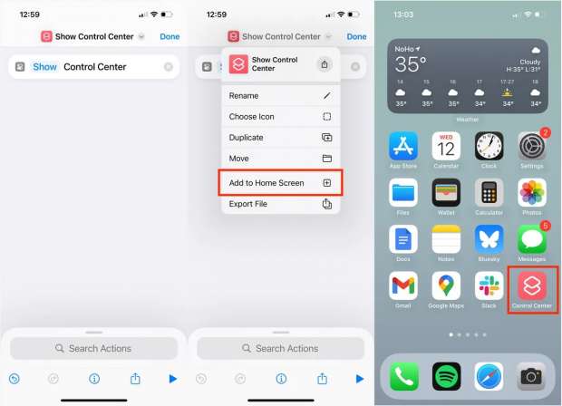 يمكنك إنشاء أيقونة اختصار لمركز التحكم على شاشتك الرئيسية، مثل أي تطبيق آخر، للقيام بذلك اتبع الخطوات التالية:
