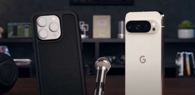 يُسلّط إعلان جوجل الجديد الضوء على المنافسة الودية مع آبل في الإعلان المصور، وتقدم جوجل بودكاست «الهاتف المتحدث»، حيث تجمع بين هاتفي Pixel 9 Pro وiPhone 16 Pro، ويبدأ الإعلان بالشائعات المُتداولة حول تصميم آيفون 17 المُسرّب المُشابه لأجهزة Google Pixel.