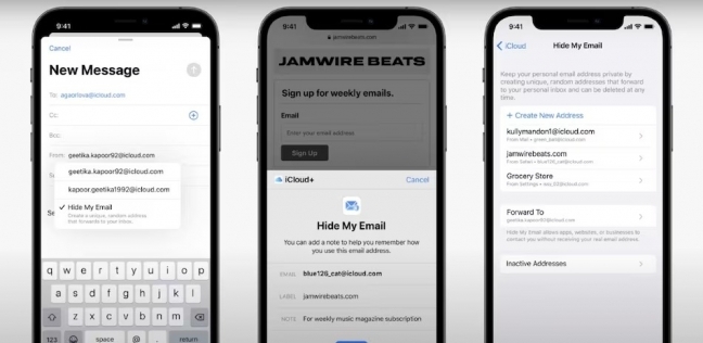 – سيسمح هذا لشركة Apple بإنشاء عنوان بريد إلكتروني عشوائي بنطاق @icloud.com، يمكنك استخدامه للتسجيل في موقع أو تطبيق جديد، دون الحاجة إلى إعلام المطورين بعنوان بريدك الإلكتروني الشخصي.