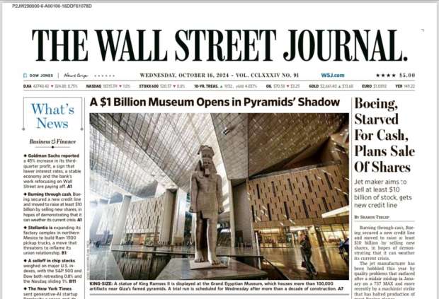 وول ستريت جورنال تبرز قصة افتتاح المتحف المصري الكبير