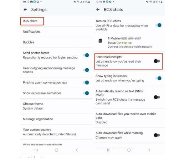 إذا كنت تستخدم هاتف أندرويد، يمكنك إيقاف إشعارات القراءة لرسائل جوجل عن طريق «فتح تطبيق الرسائل، اضغط على ملفك الشخصي في الزاوية العلوية اليمنى، ثم انتقل إلى إعدادات الرسائل، محادثات RCS، ثم أوقف تشغيل إرسال إشعارات القراءة».
