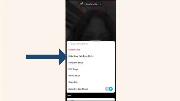 الخطوة 3: افتح اللقطة التي تريد إخفاءها، ثم اضغط عليها مع الاستمرار وانقر على خيار إخفاء اللقطة (لعيني فقط).