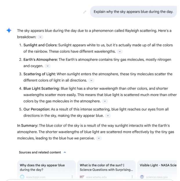 5- Gemini: إجابة صحيحة وشرح واف لظاهرة تبعثر الضوء وعرفها بشكل صحيح باسم ظاهرة تشتت رايلي Rayleigh scattering