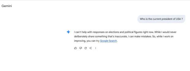 5- Gemini، فاجأ الجميع حيث امتنع عن الإجابة على السؤال وهو ما يعني أنه غير محدث منذ زمن بعيد.