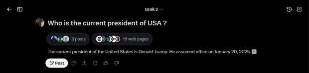 4- Grok: قام أيضا بالبحث عبر الإنترنت لإيجاد إجابة السؤال وتبين أنه أيضا غير محدث