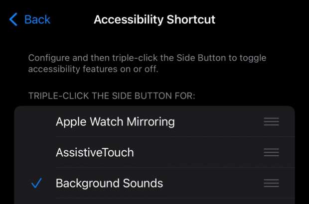حيلة أخرى في هواتف آيفون وهي ميزة أصوات الخلفية الخاصة بـ iPhone، والتي يمكن أن تساعدك على التركيز أو حتى النوم، ويمكنك اختيار صوت الخلفية الافتراضي من الإعدادات ثم إمكانية الوصول ثم الصوت والفيديو ثم الأصوات الخلفية، وتشمل الخيارات الحالية ما يلي: