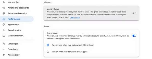 يعتمد متصفح Arc على نفس تقنيات توفير الطاقة الموجودة في Chrome، مما يجعله خيارًا ممتازًا للحفاظ على عمر البطارية، ويمكنك تفعيل وضع توفير الطاقة في Arc بخطوات بسيطة وهي:
