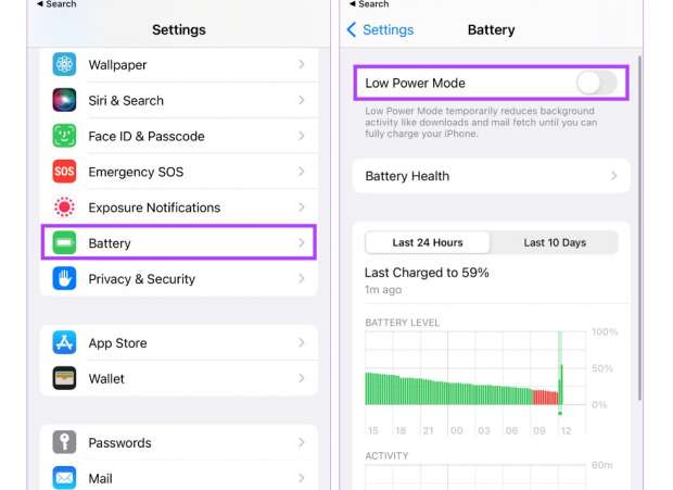 الخطوة الثانية: قم بإيقاف تشغيل خيار وضع الطاقة المنخفضة الموجود في الجزء العلوي من الشاشة.