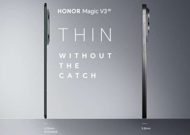 لكن هونر كان لها رأي آخر، ففي إعلان تشويقي لهاتف Magic V3، قارنت الشركة سُمكه، والذي يبلغ 4.35 مم فقط، وهذا يجعله أنحف بشكل ملحوظ من هاتف Galaxy S25 Edge.