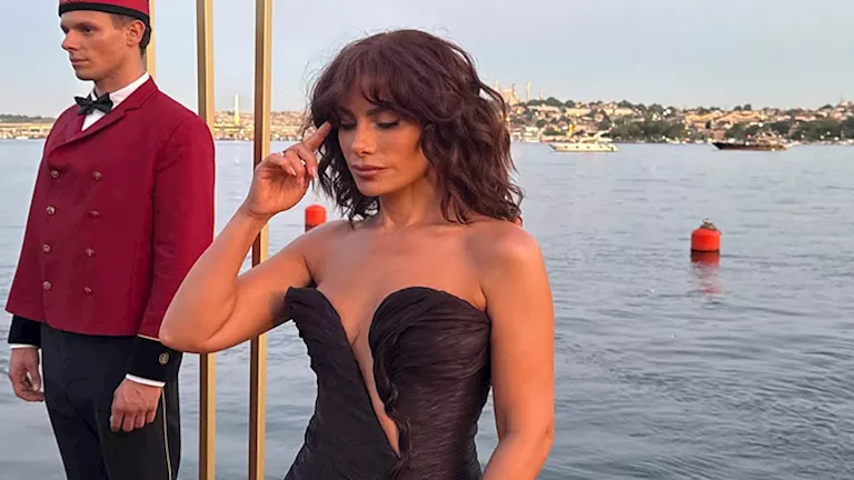 أما بالنسبة لتصفيفة الشعر، اعتمدت تسريحة قصيرة ومموجة منحتها مظهرا عصريا وجذابا.